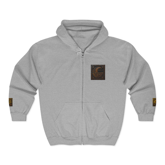 Full-Zip Hoodie with Gold 'Oegtela' Crest — Gothic Dragon Emblem Zip-Up