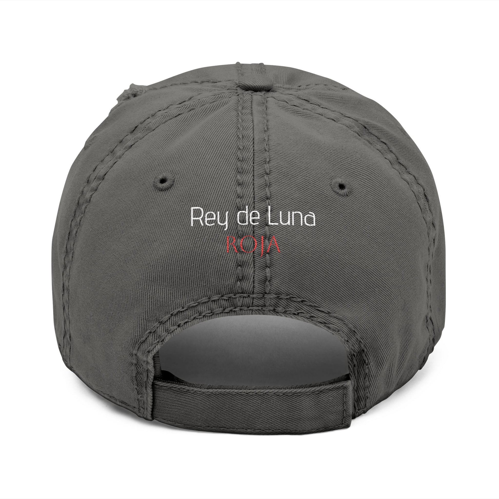 Distressed Embroidered Dad Hat — 'OegTela' Front & 'Rey de Luna' Back