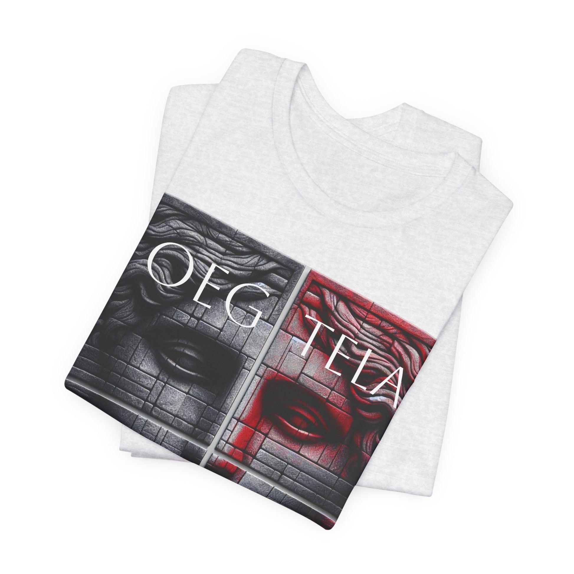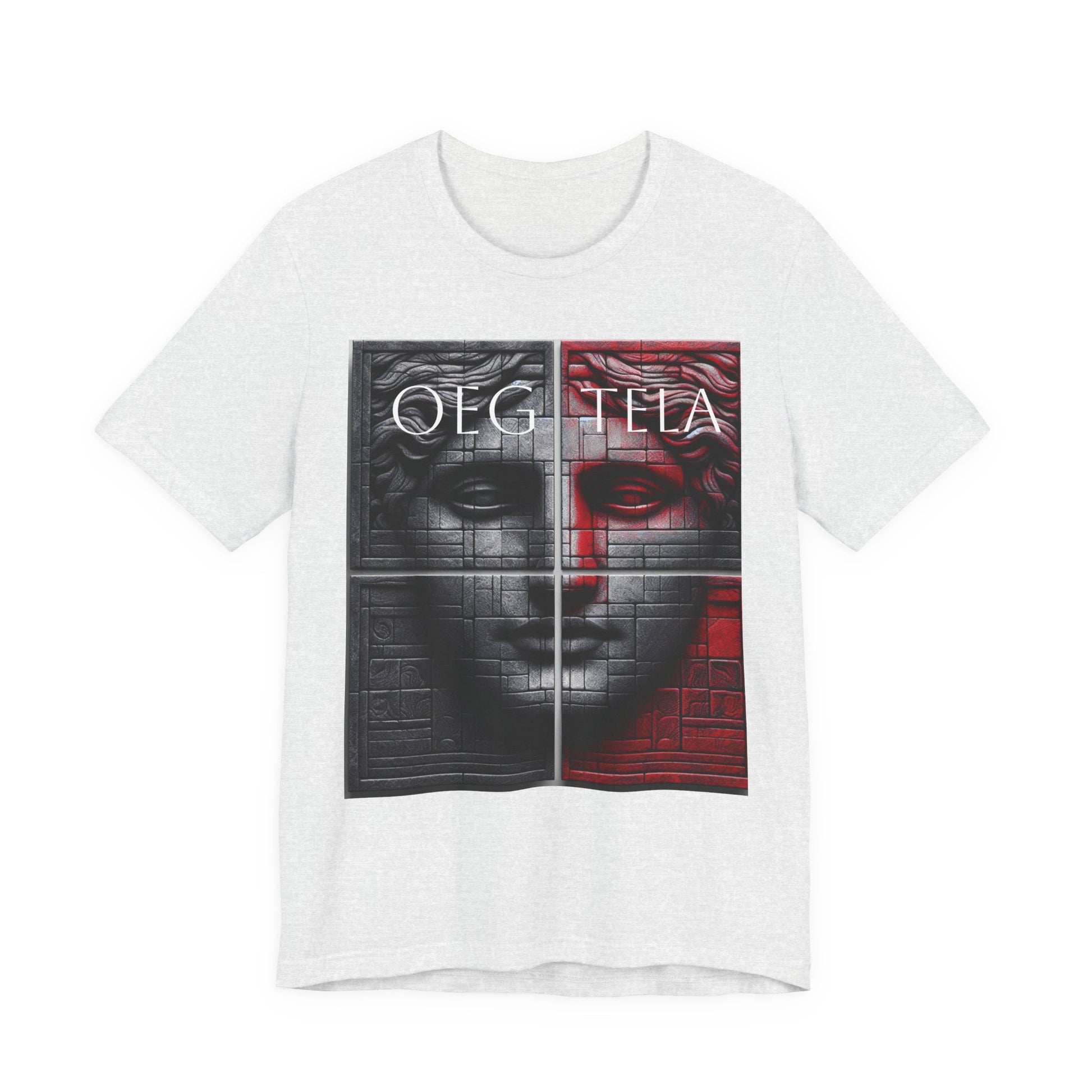 A crisp, art-forward tee that frames a modern reinterpretation of classical sculpture. The front features a high-contrast, two-toned face split across a subtle brick texture—half in deep charcoal, half washed in a moody red—giving the image a cinematic, gallery-ready presence. Lightweight Airlume combed and ring-spun cotton makes this shirt breathable and soft against the skin, while side seams, shoulder tape and a ribbed knit collar keep the silhouette neat and long-lasting. Wear it layered under a jacket for city nights or alone to let the artwork speak. The tear-away label and sustainable manufacturing credentials mean comfort and conscience go together.
