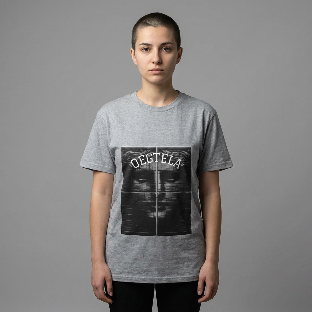 Statue Face Graphic Tee — 'OEGTELA' Vintage Monochrome Art T‑Shirt